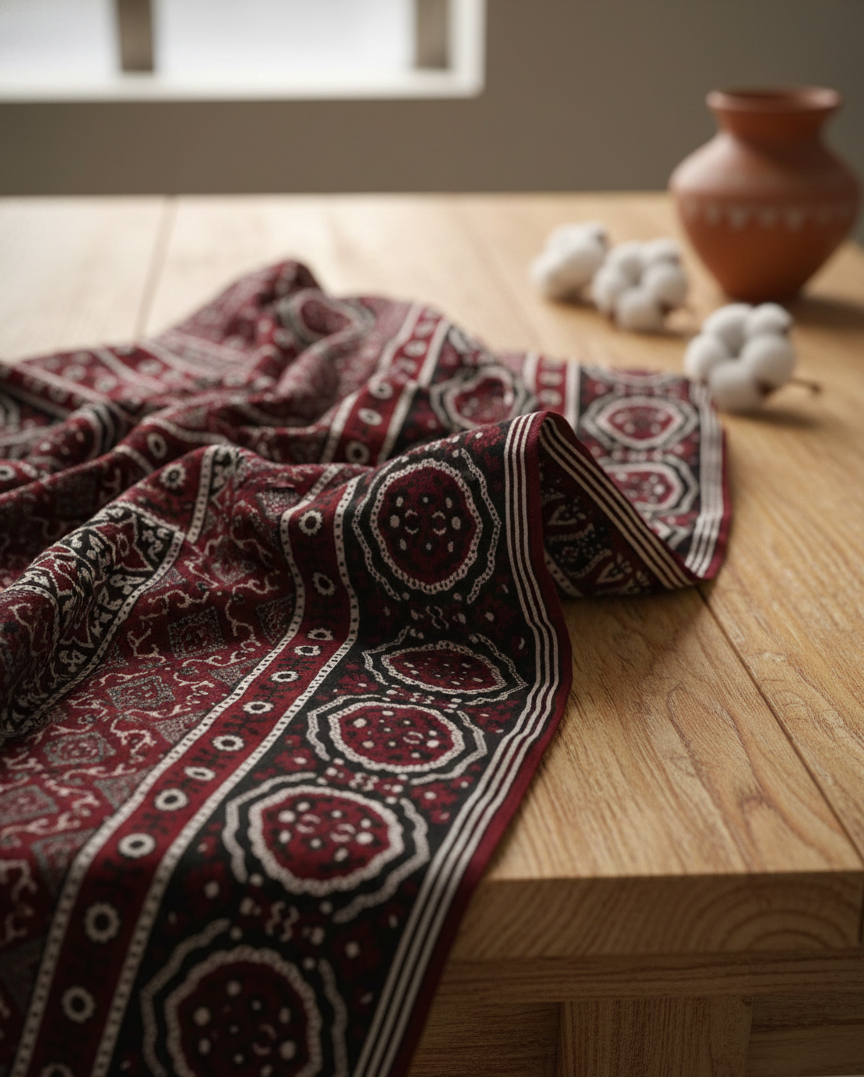 Be the first to review “Black & Maroon Sindhi Ajrak Pack of 4 – Premium Hand-Blocked Shawls”